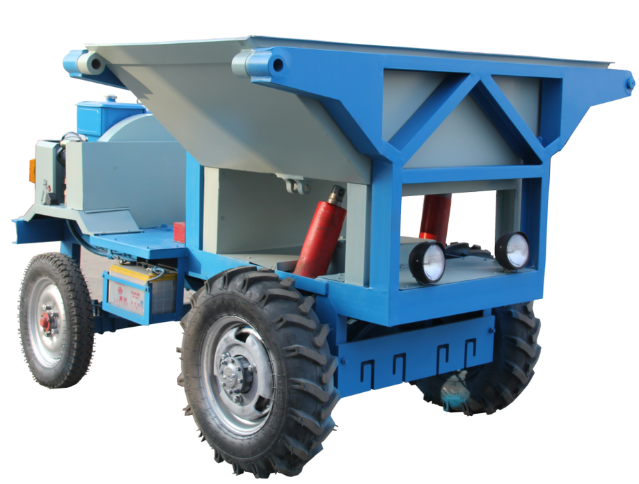 The Manual Cart for Concrete feeding is use to unload the concrete in the extrusion machine hopper. The Battery Operated Mini Dumper is driven directly below the mixer of batching plant for collection of the concrete mix. As the bucket is mounted on back side of the vehicle one can view & control while unloading concrete mix into the hopper of extrusion machine.