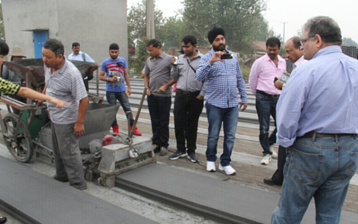 Under the leadship of our Indian agent, they visit our factory and the wall panel machine, column machine, large span hollow core slab machine producing site.