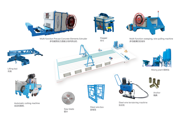 4、It can produce: hollow core slab、solid slab、wall panel、T-beam、small double T beam、column , etc.